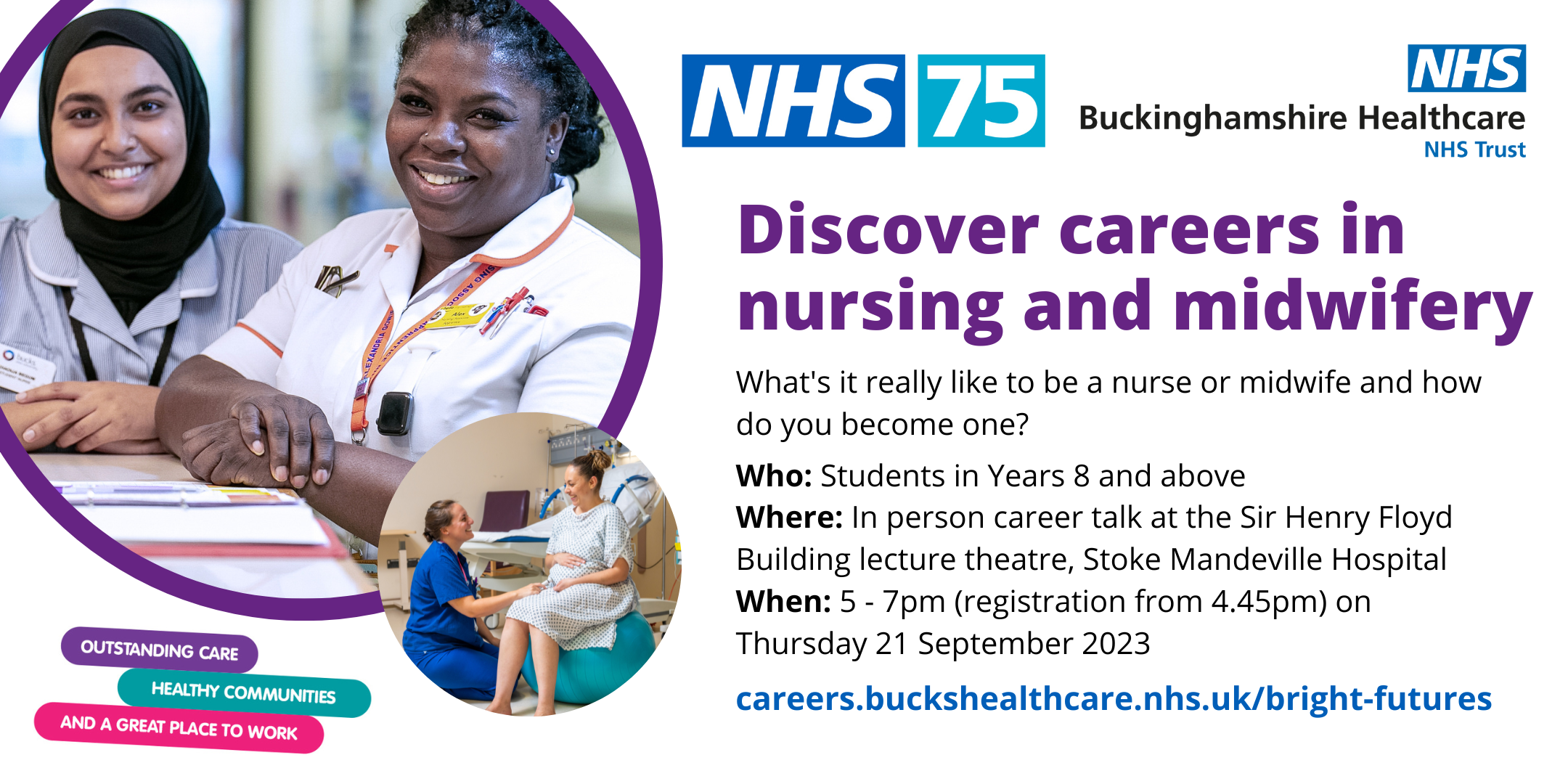 What’s it really like to be a nurse or midwife and how do you become one? We’re inviting local secondary school students to find about about career opportunities at Buckinghamshire Healthcare NHS Trust.